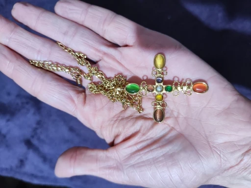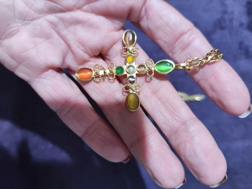 Natural Stone Cross Pendant Necklace, Wonderful Statement piece. Long chain easy to wear a perfect layering piece.